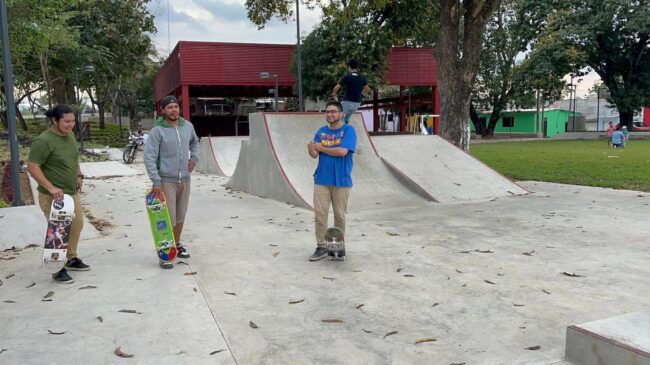 “Waña” y “Alvin”, dos skaters tuxtepecanos que hoy regresan, después de muchos años, a usar su patineta porque ya hay un skate park en Tuxtepec