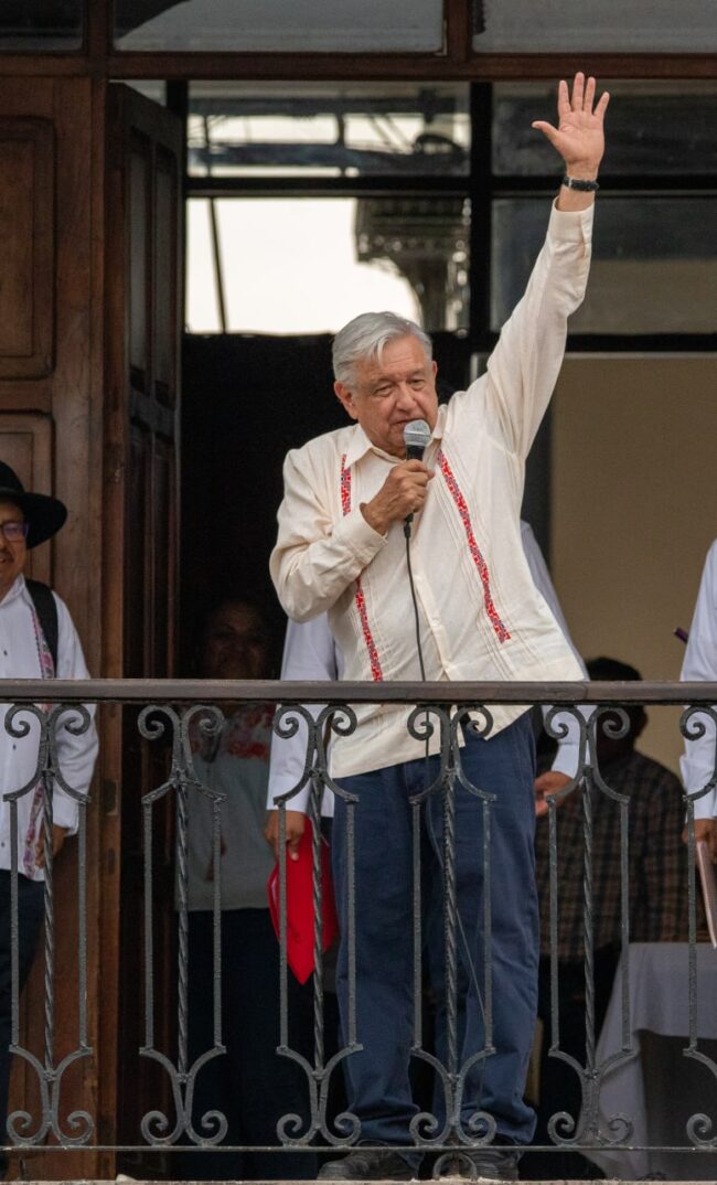 Así aterrizó AMLO en Tuxtepec; así saludo a los Tuxtepecanos en balcón de Palacio