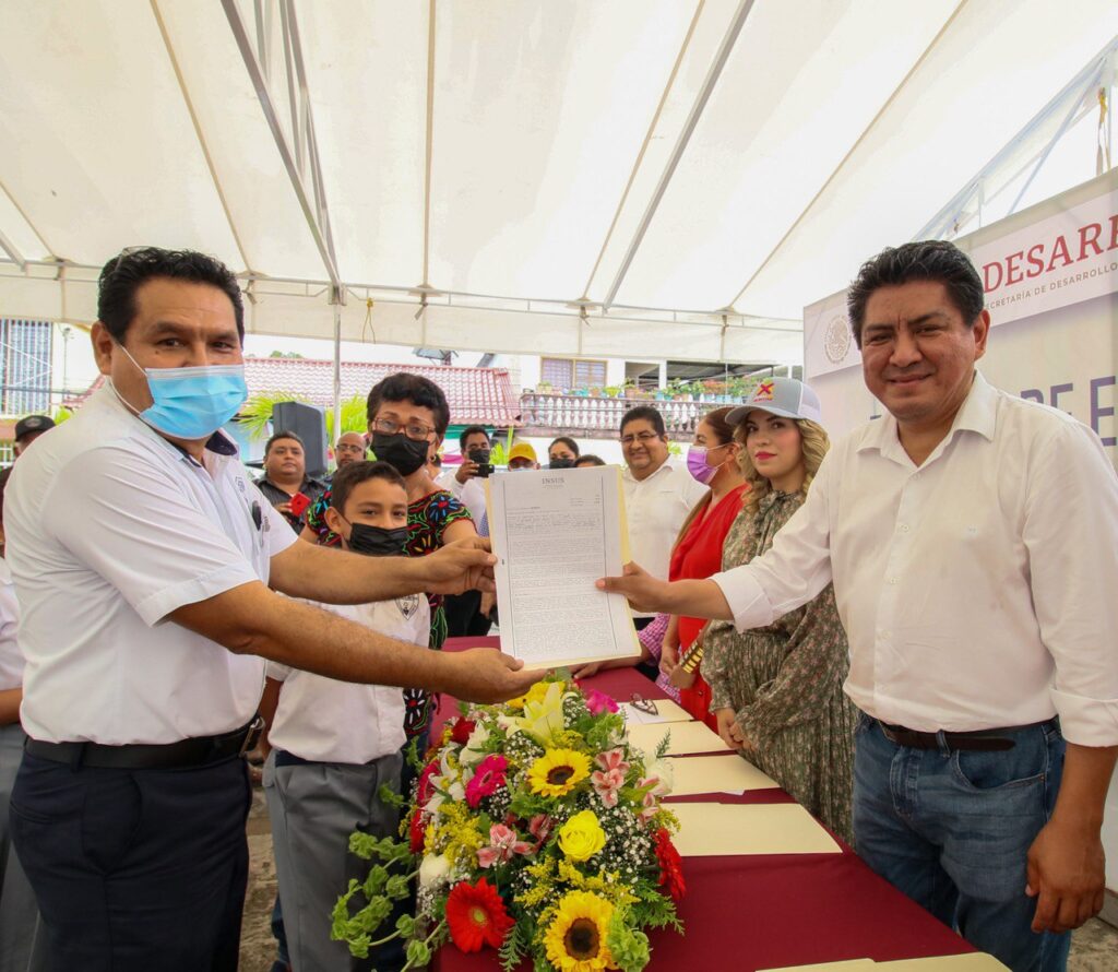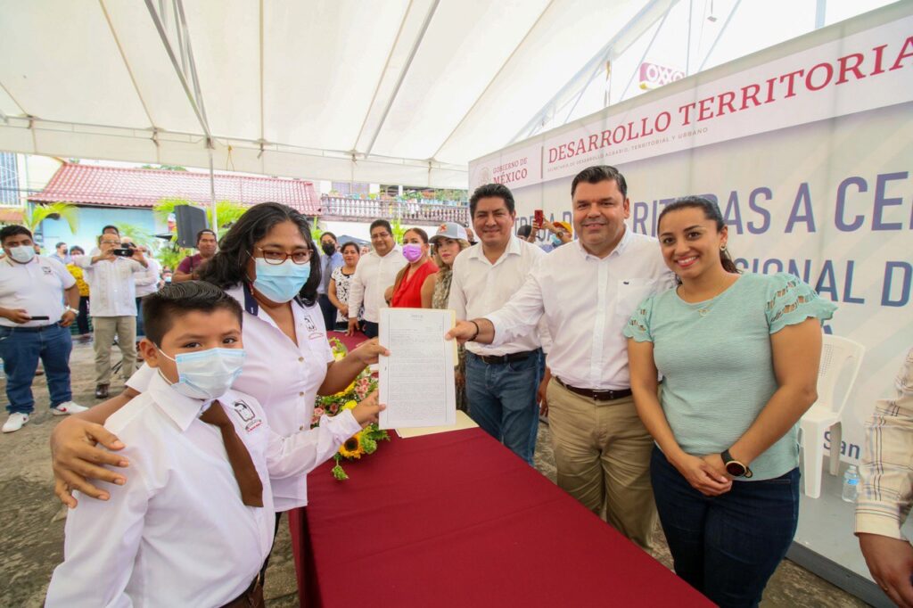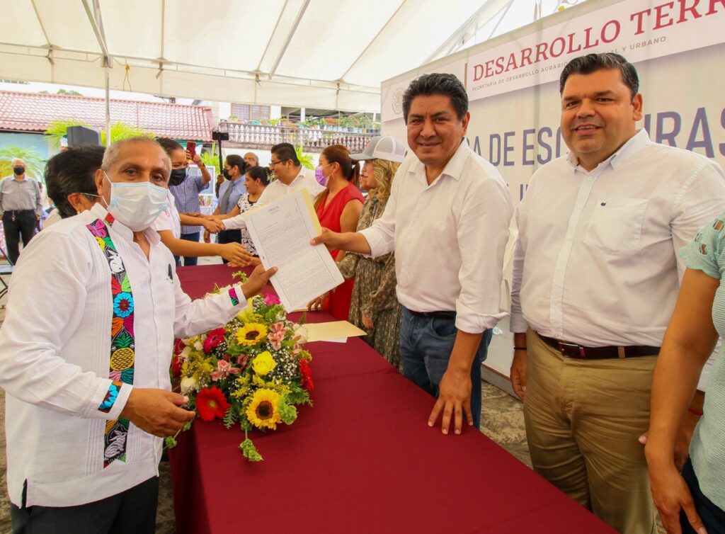 La representante del Instituto Nacional del Suelo Sustentable (INSUS) Ana Sharey Eulogio Aguilar asentó que la entrega de la documentación significaba “un día memorable para Tuxtepec y su sector educativo”.