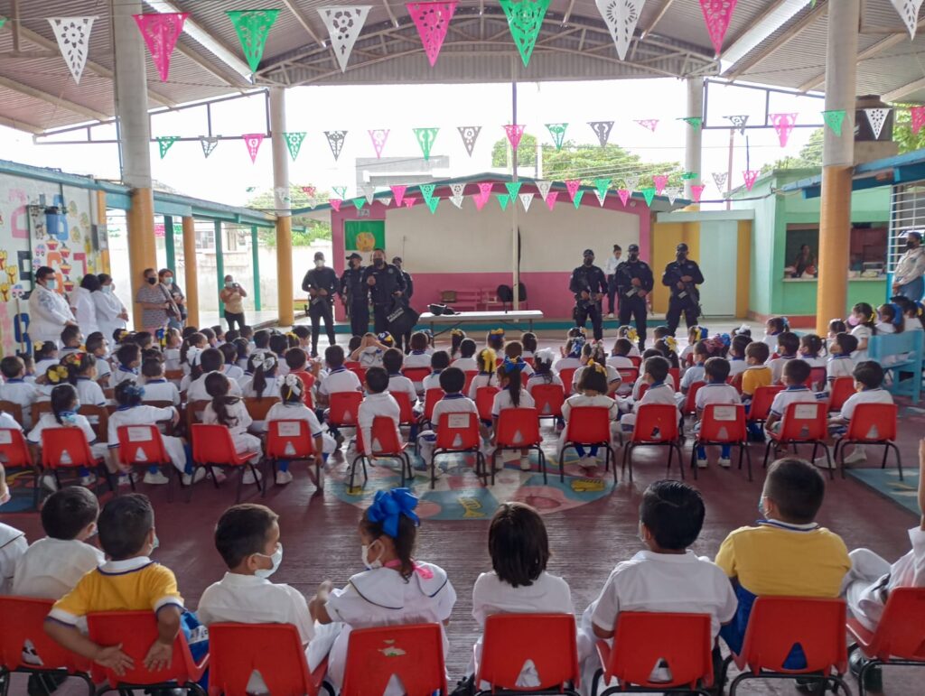 La Coordinación de Prevención del Delito y Participación Ciudadana a cargo de Claudia Inés Cazarín López informó que hasta ahora se han sumado esfuerzos con alumnado y personal docente de las escuelas primarias “Jorge L. Tamayo” y “Miguel Hidalgo”, así como los jardines de niños “Margarita Maza de Juárez”, “Gabriela Mistral” y “Adela Hernández” desarrollando actividades cívicas con enfoque de proximidad social.