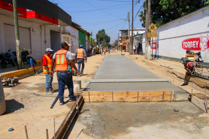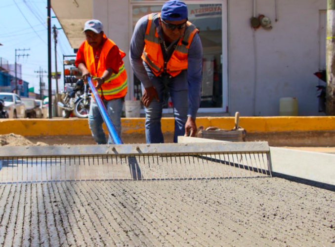 A casi dos meses de iniciar la rehabilitación de la calle Zaragoza con nueva tubería de drenaje sanitario y realizar trabajos de terracerías, este martes el personal a cargo de la Dirección de Obras Públicas inició la pavimentación con concreto pre-mezclado de 20 centímetros de espesor.