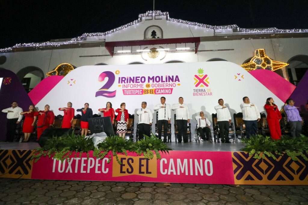 “Estoy contento, estoy feliz, en Tuxtepec se respiran aires de cambios tangibles con la aprobación de los ciudadanos y un nuevo modelo de gobierno” dijo el Presidente Municipal de Tuxtepec, Irineo Molina Espinoza al iniciar su Segundo Informe de Gobierno, donde demostró que la actual administración supero sus propias metas en bienestar de Tuxtepec.