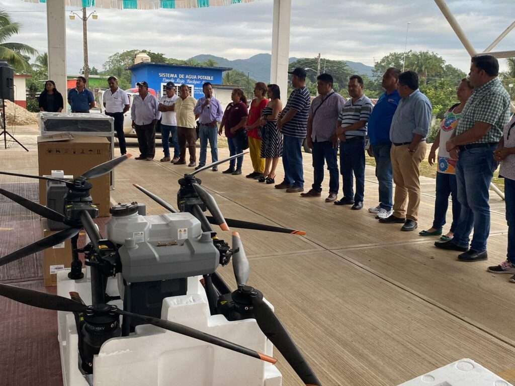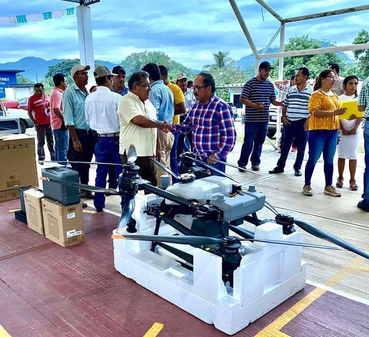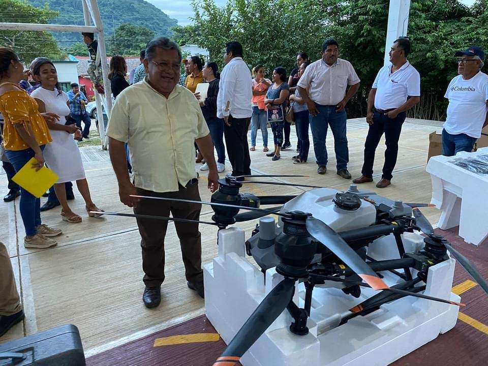 Esta tarde ejidatarios de la comunidad de Camelia Roja recibió un dron de gran tamaño que les será de gran utilidad para sus cultivos de plátano.