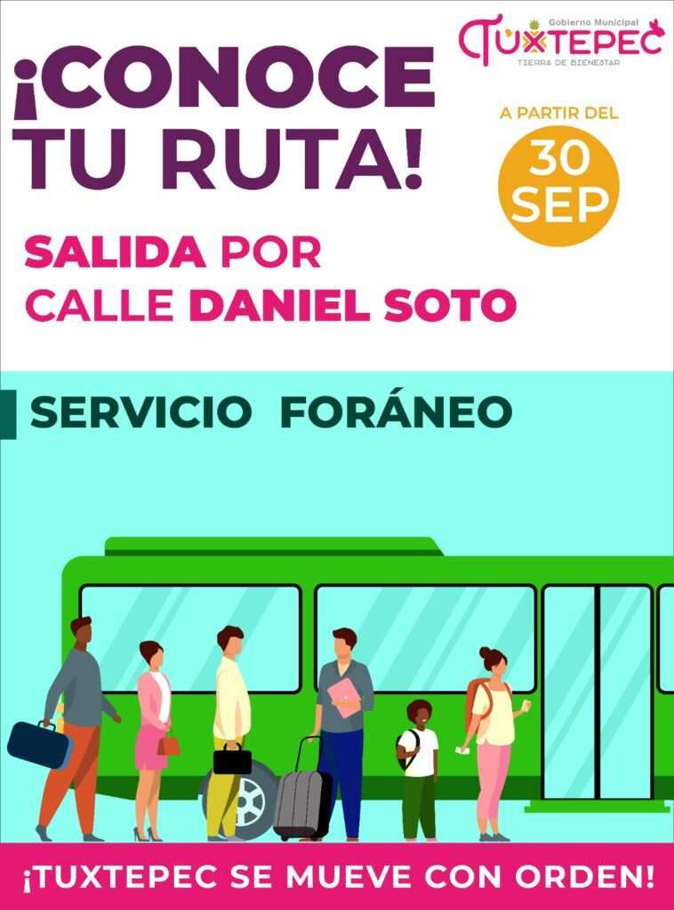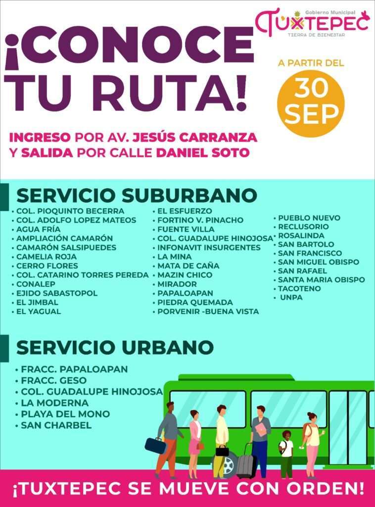 Los letreros “Servicio de Transporte Urbano,” “Servicio de Transporte Suburbano,” y “Foráneo” serán visibles en las unidades de transporte, facilitando la identificación de cada tipo de servicio y asegurando un viaje más claro y cómodo para los pasajeros.